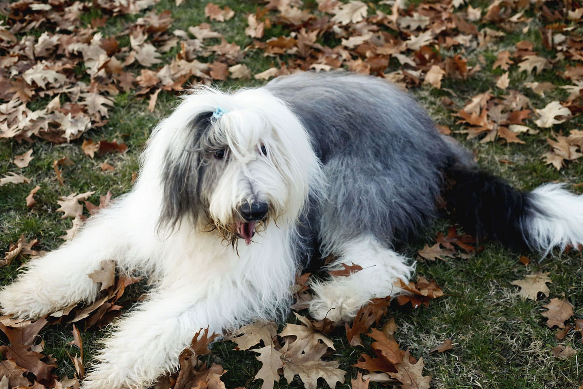 这种犬种的毛发长而密,通常呈现灰白相间的颜色。它们的毛发虽然看起来松散蓬松,但实际上却需要细心打理和定期梳理,以保持毛发的健康光泽。眼睛通常是深色的,透露出机智与敏锐的光芒。耳朵通常半立,呈V形。其尾巴相对较短,常常垂挂在身体后部。