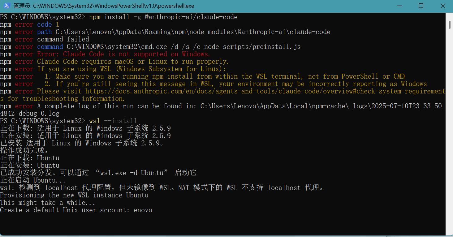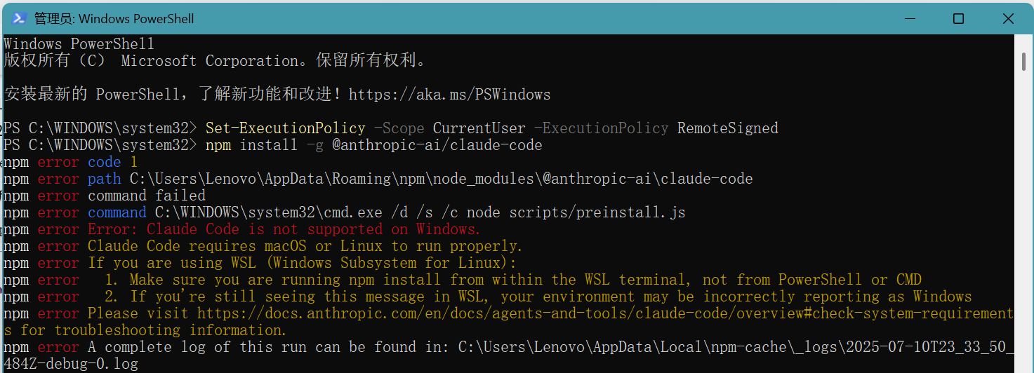 从报错信息来看,@anthropic-ai/claude-code 不支持 Windows 系统,这是一个明确的限制: