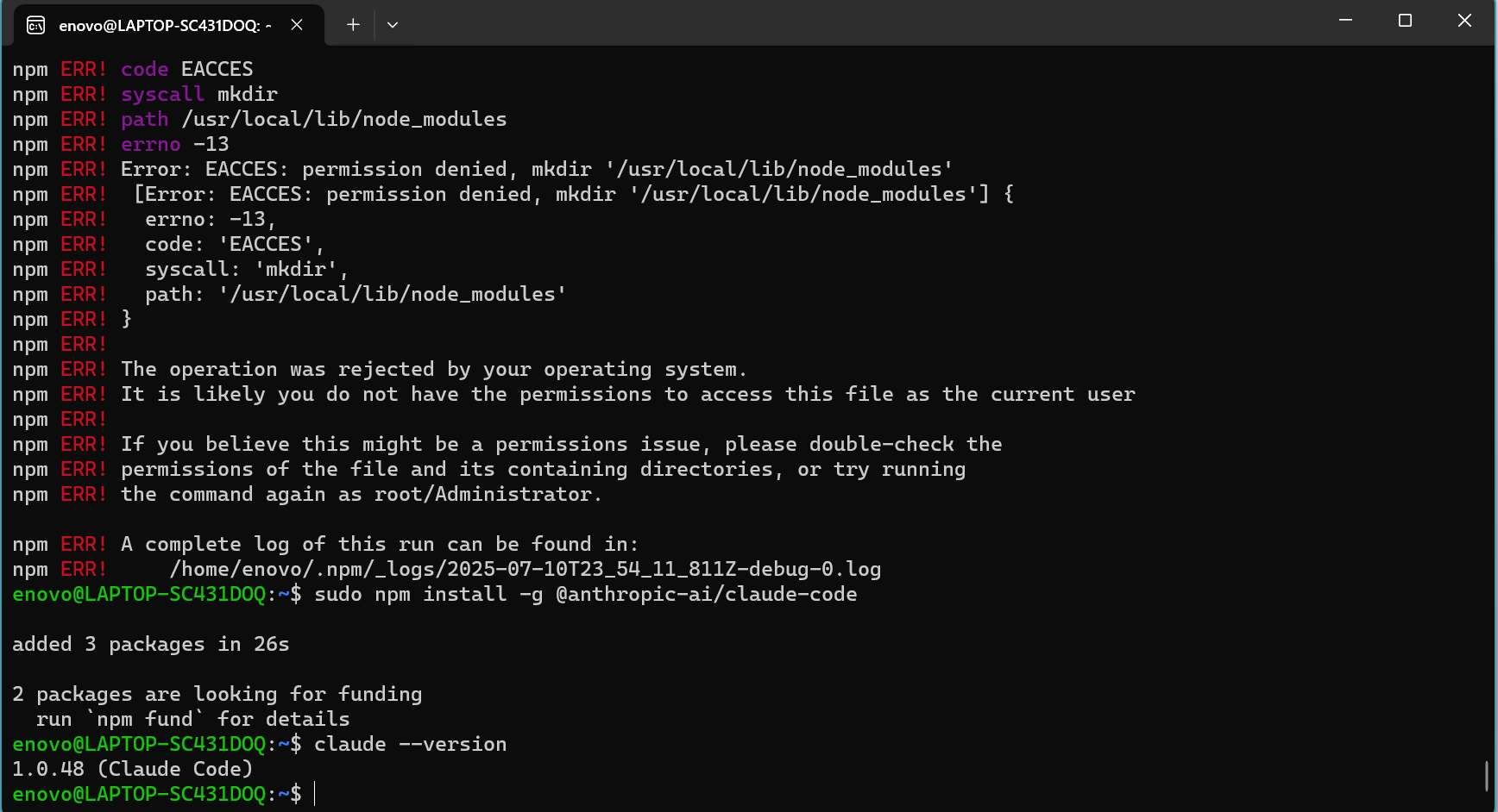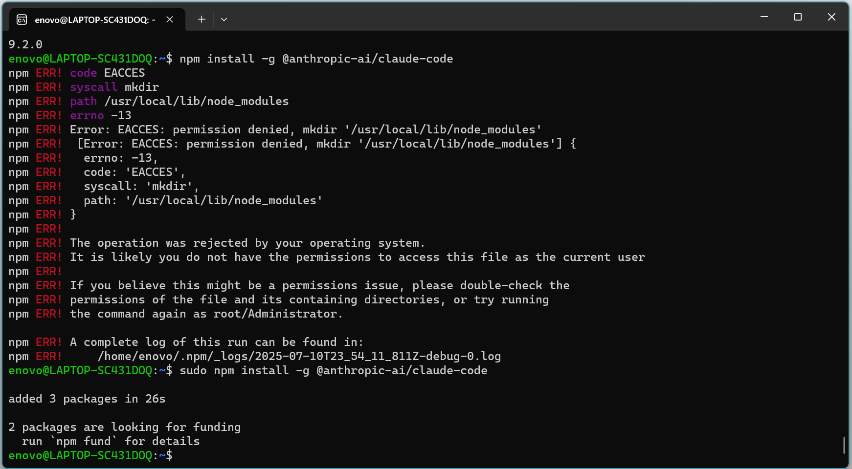 sudo npm install -g @anthropic-ai/claude-code
