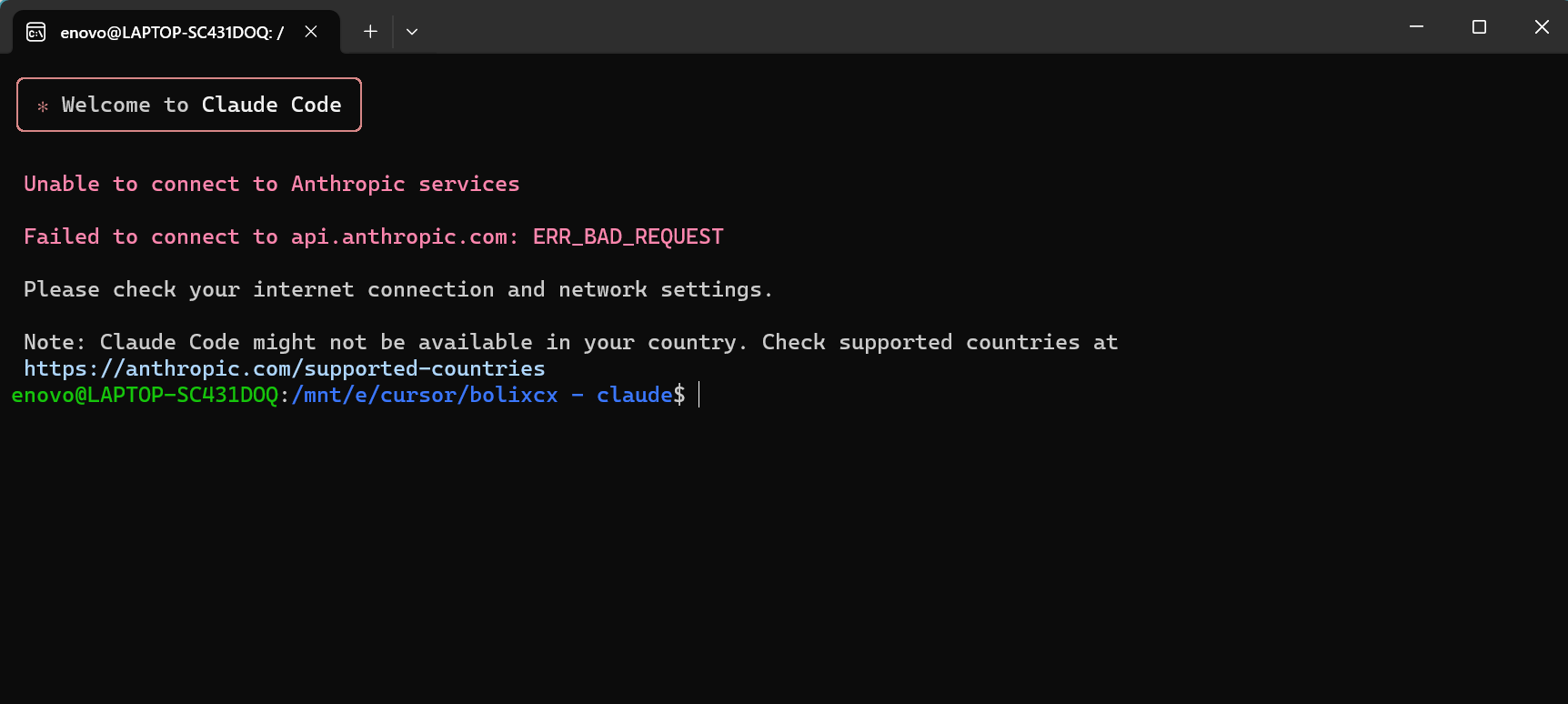 Claude Code is not supported on Windows. Claude Code requires macOS or Linux to run properly.