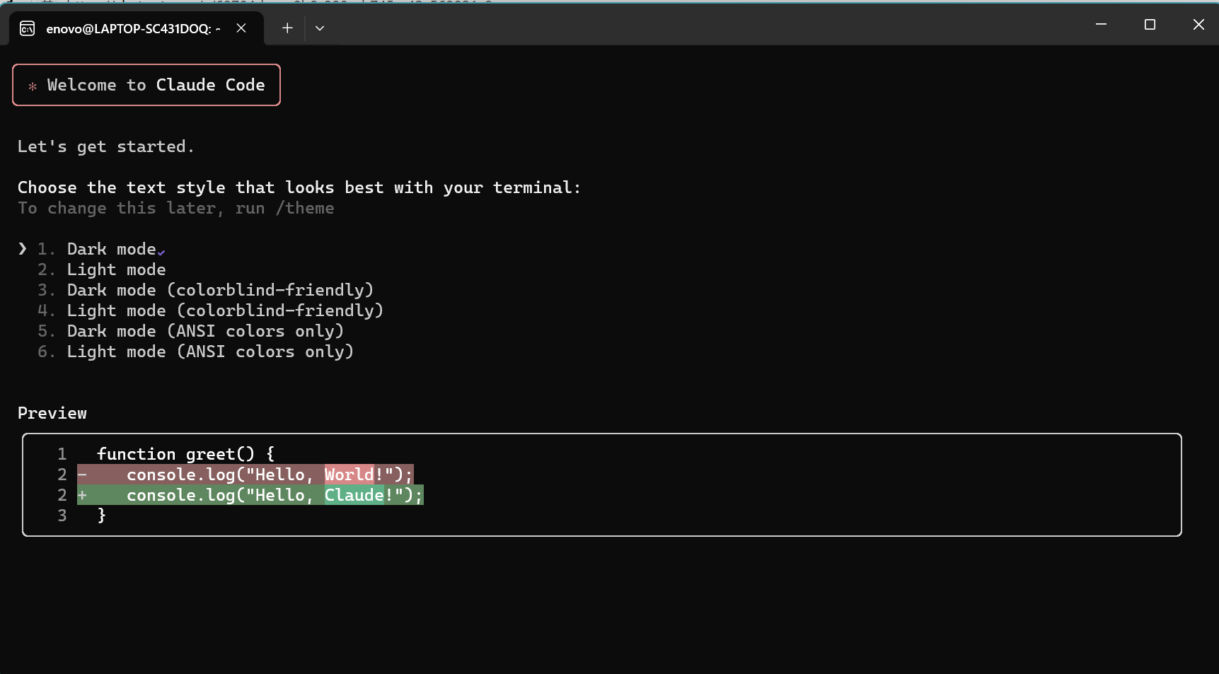 使用上下方向键选择主题,然后按回车键确认即可,后续可以通过/config 命令调整。